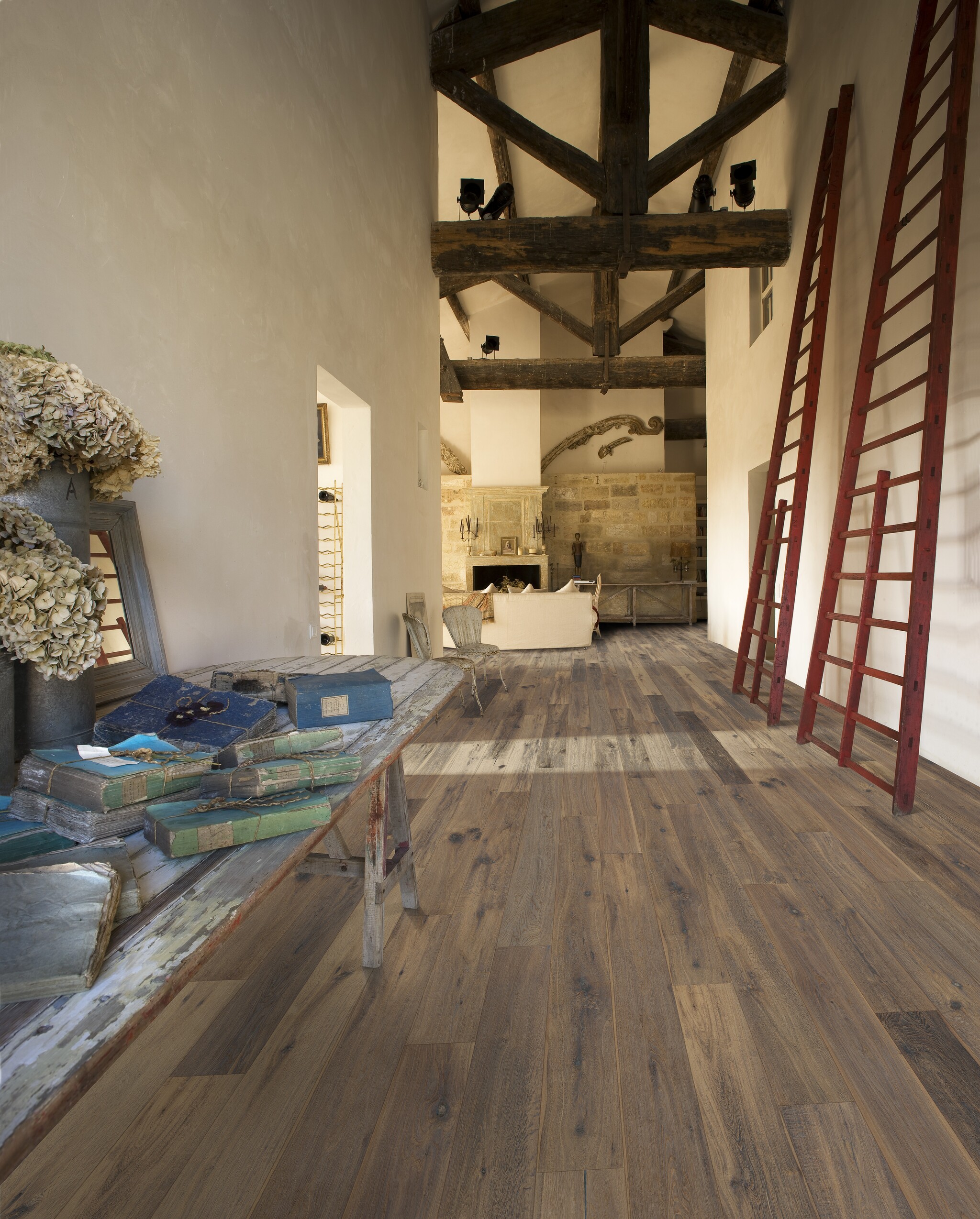 Prírodný olej, morený do siva, kefovaný, ručne škrabaný, skosené hrany 4V